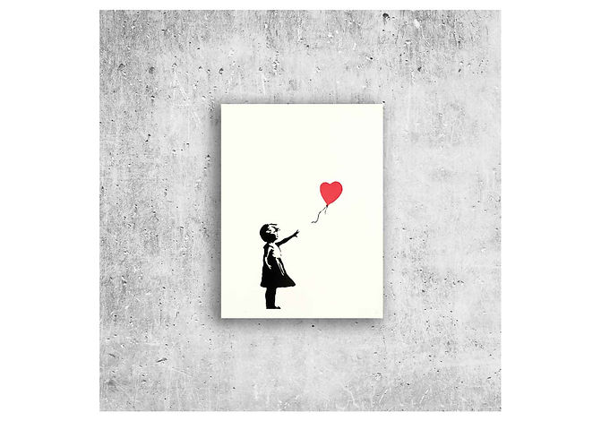 Originally created in Banksy’s unmistakable style of spray stenciled painted, the piece depicts a girl reaching for her lost balloon, taken by the wind...or did she let it go deliberately? Owing to Banksy’s notorious reticence, the intended meaning behind Girl with Balloon is unclear, igniting vivid debate centred around themes such as love, innocence, and hope.